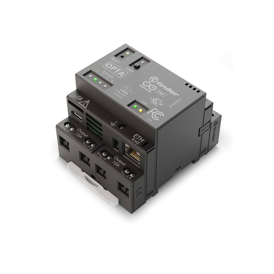 Arduino Opta Lite (AFX00003) is a compact industrial-grade micro‑PLC featuring a dual‑core STM32H747 (Cortex‑M7 at 480 MHz + M4 at 240 MHz), 8 configurable analog/digital inputs, 4 high‑power relay outputs, and built‑in Ethernet & USB‑C. It supports standard Arduino IDE and IEC‑61131‑3 PLC languages