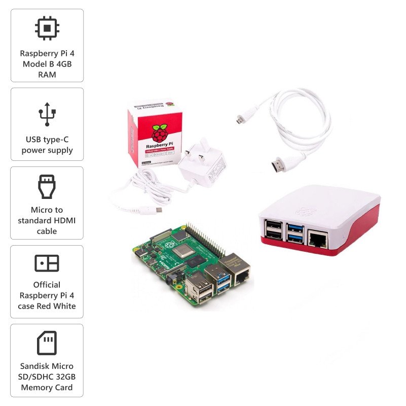 Raspberry Pi 4 Model B (4 GB) Starter Kit – A full-featured bundle centered around the official Pi 4 board (1.5 GHz quad‑core Cortex‑A72, 4 GB LPDDR4 RAM).