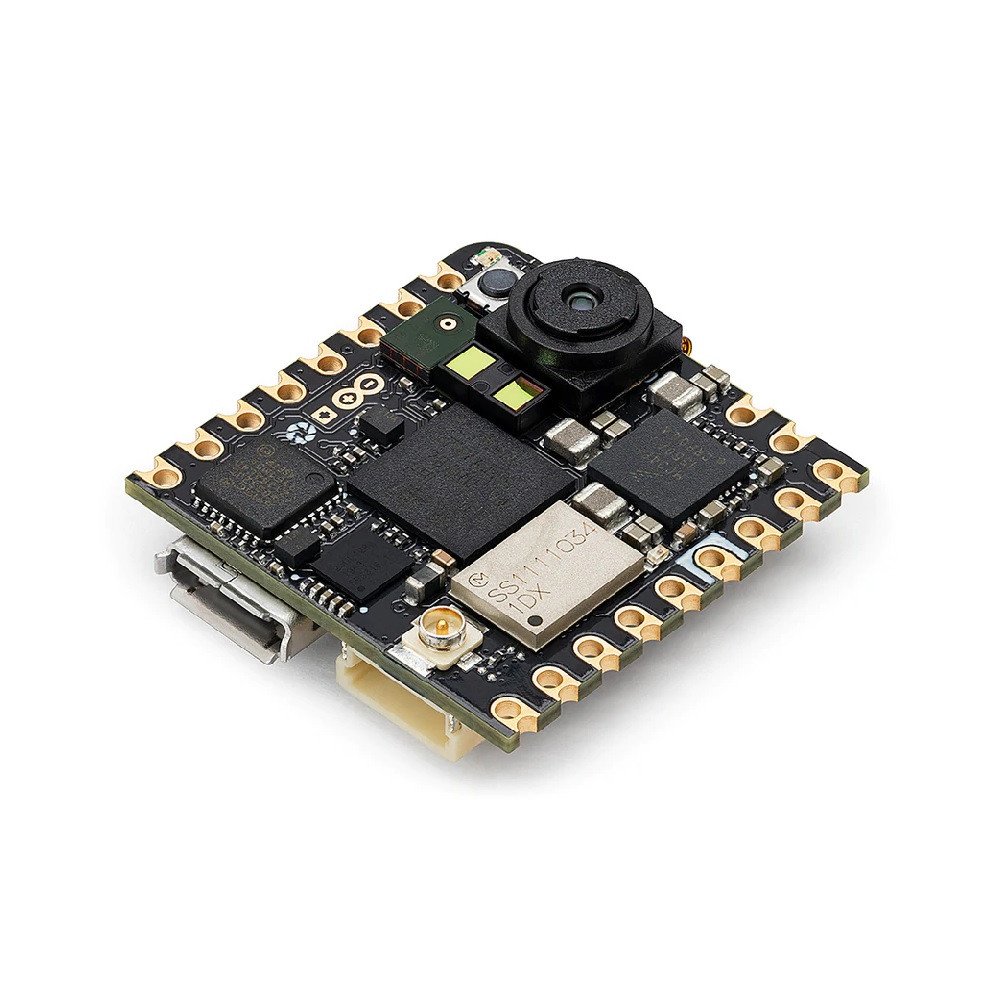 Arduino Nicla Vision (ABX00051) is a tiny vision‑AI board measuring just 22.86 × 22.86 mm, powered by a dual‑core STM32H747 (Cortex‑M7 @480 MHz + M4 @240 MHz), integrating a 2 MP color camera, 6‑axis IMU, distance sensor, microphone, Wi‑Fi/Bluetooth LE, and battery support