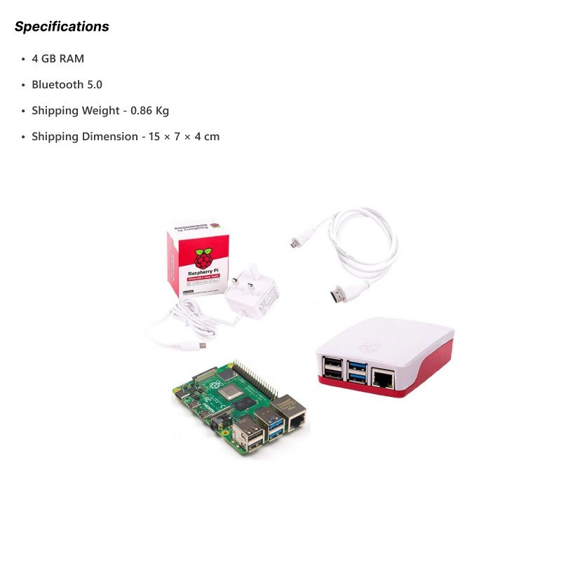 Raspberry Pi 4 Model B (4 GB) Starter Kit – A full-featured bundle centered around the official Pi 4 board (1.5 GHz quad‑core Cortex‑A72, 4 GB LPDDR4 RAM).