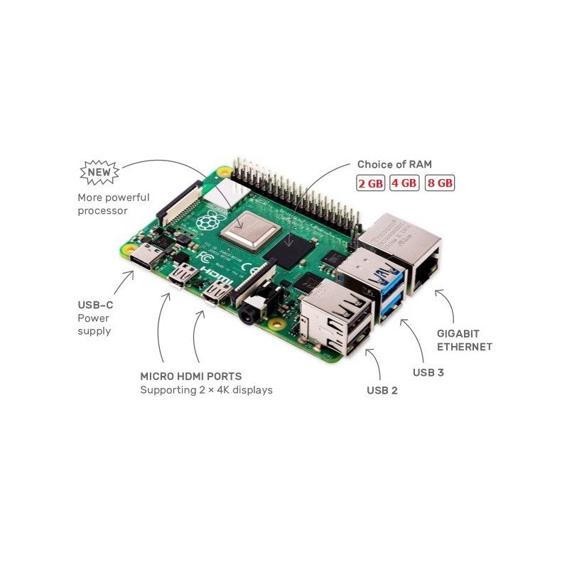 Raspberry Pi 4 Model B with 1 GB LPDDR4 RAM features a 1.5 GHz quad‑core ARM Cortex‑A72 CPU (Broadcom BCM2711), delivering desktop-class performance in a compact, energy-efficient board.